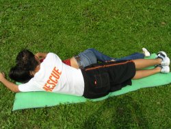 - ak to situácia umožňuje - ľahneme si k postihnutému a izolujeme ho, resp. ohrievame ho vlastným telom - najlepšie ak sme traja - dvaja si ľahnú k postihnutému a tretí zabezpečí pomoc - je vhodné občas sa postaviť a trošku sa pohýbať: drepy, chôdza, takto si rozprúdime krv a zamedzíme nášmu podchladeniu