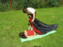 - postihnutého dáme do spacáku, alebo prikryjeme ho hliníkovou fóliou, dekou, bundou a pod. a odizolujeme ho od zeme najlepšie karimatkou, resp. batohom, čečinou, novinami a pod.